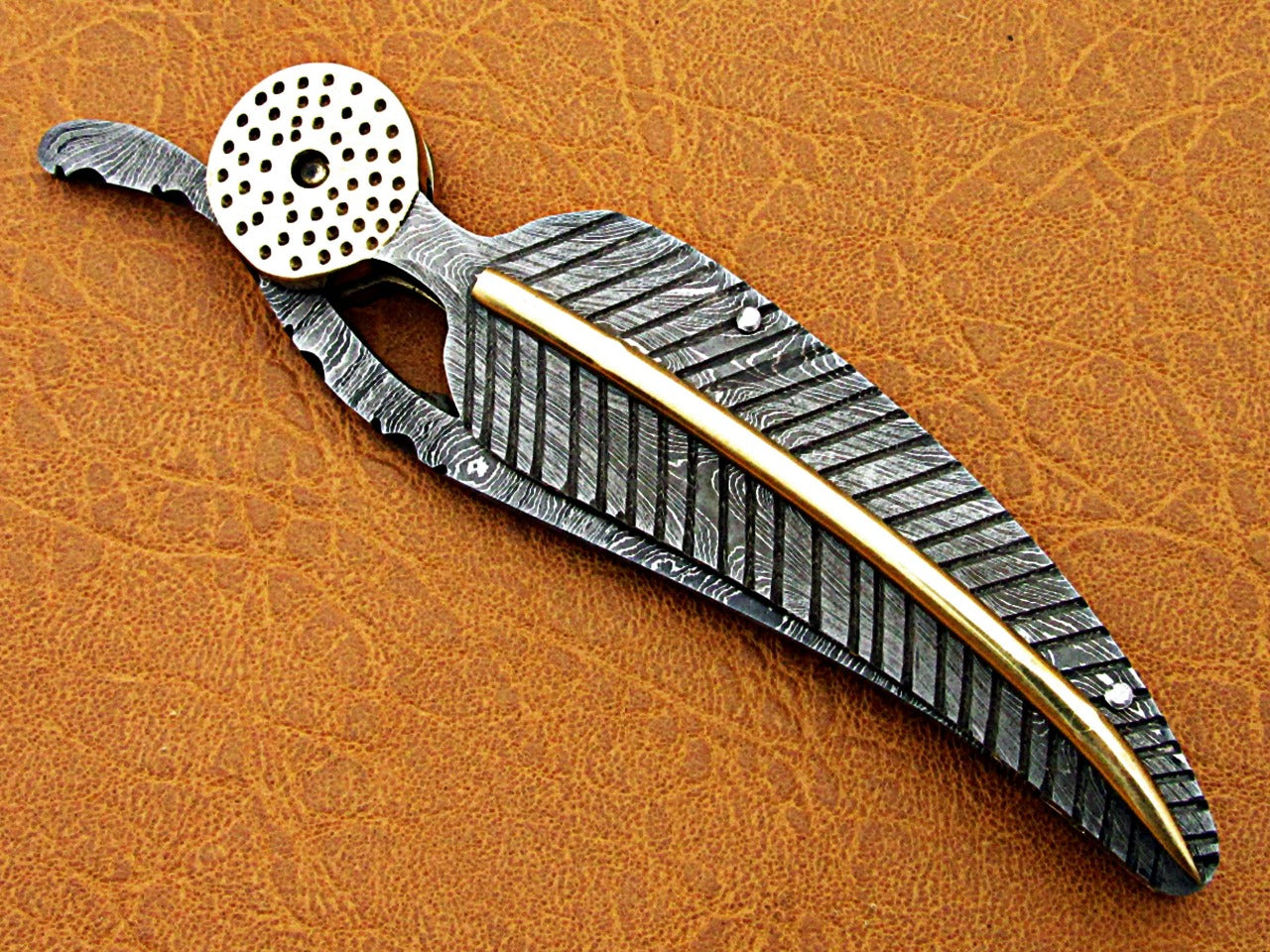Engraved Damascus scale crafted with Brass making a beautiful leaf shape