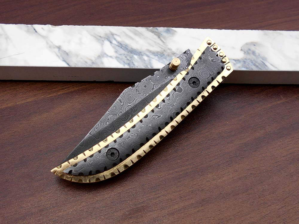 Hand crafted Engraved brass around Damascus steel scale