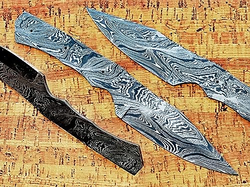 9.5 inches long Blank blade, hand forged Twist pattern Damascus steel skinning knife blade, knife making supplies, Drop point blade Pocket knife with 3 Pin hole, 4" cutting edge, 4.5" scale space with 1 finger groove