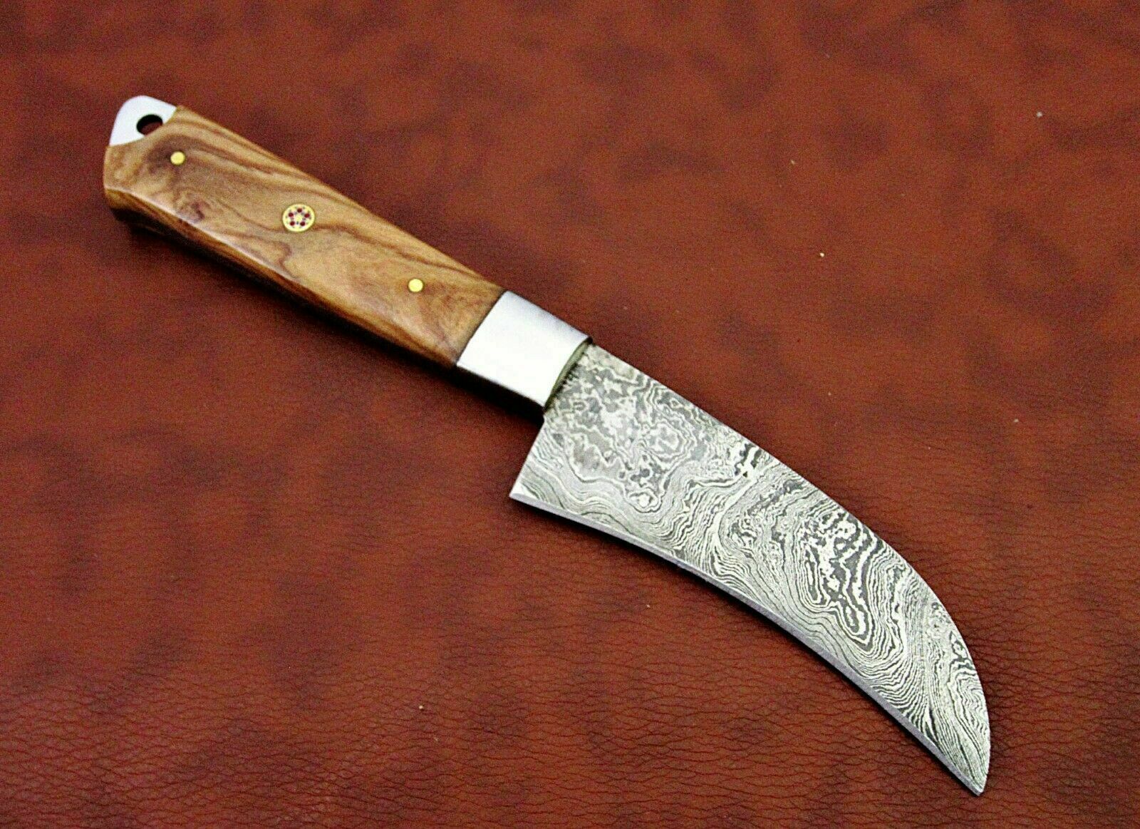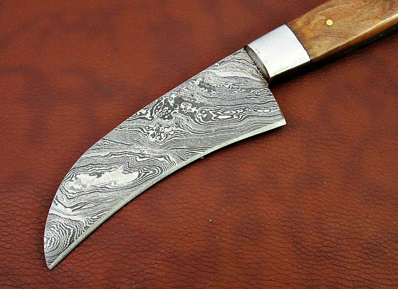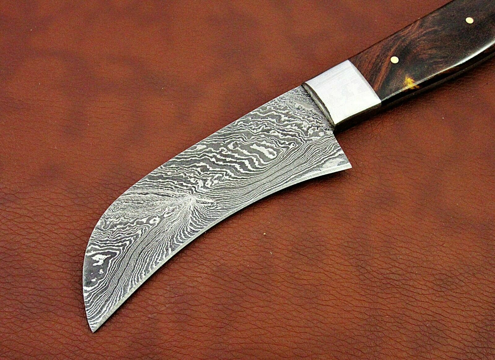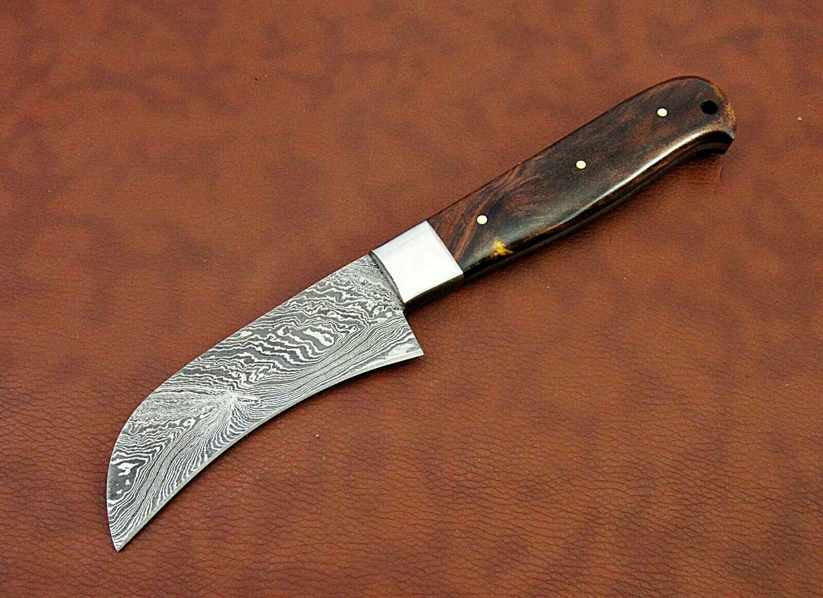 9.5" long Damascus steel blade peeler knife, Available in Walnut and Kao wood scales