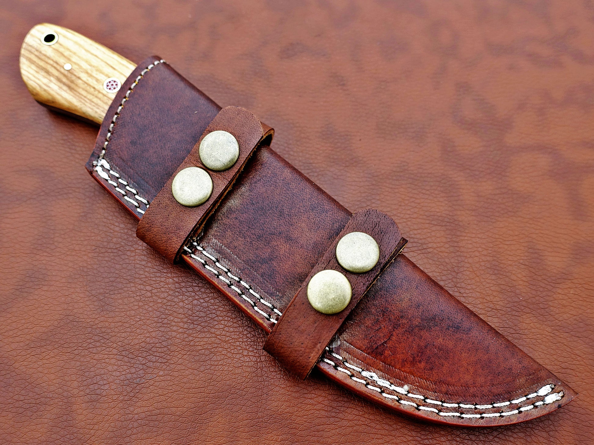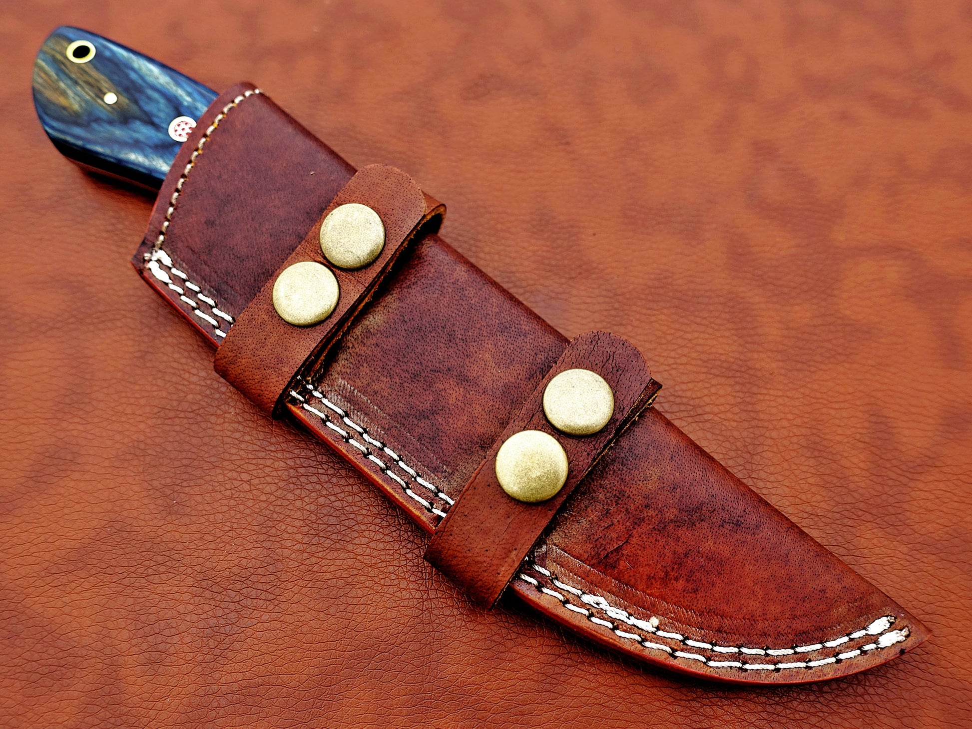 Never store your knife for long time in leather sheath. Leather can absorb water which will rust the knife. Always clean the blade after using and apply oil or wax (please use cooking oil on Chef Knife) before you store it, for its longer life and durability.