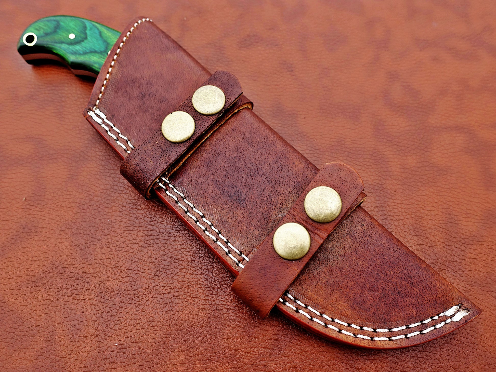Never store your knife for long time in leather sheath. Leather can absorb water which will rust the knife. Always clean the blade after using and apply oil or wax (please use cooking oil on Chef Knife) before you store it, for its longer life and durability.