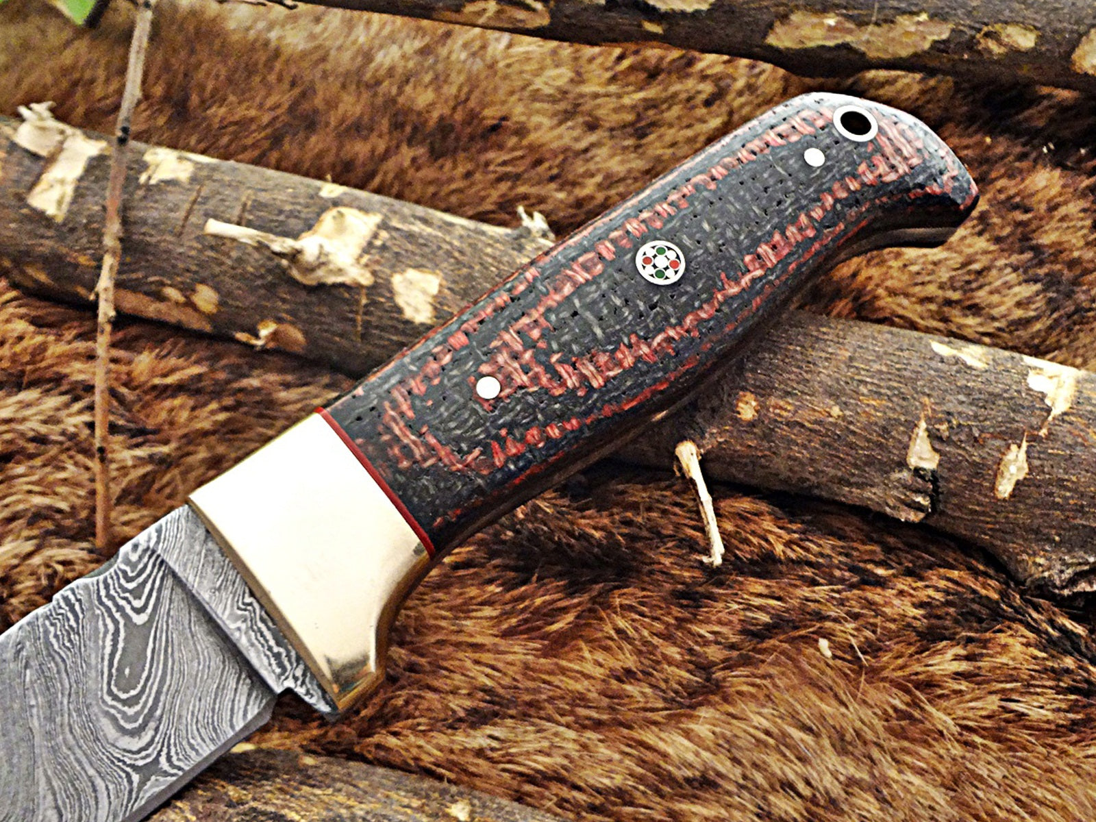 Available in Black and 2 tone black Micarta wood scale with Brass Bolster