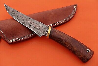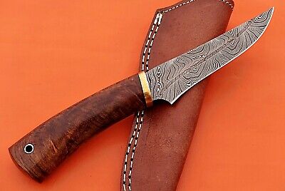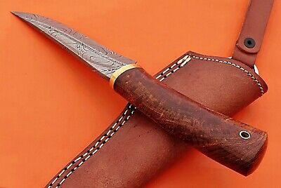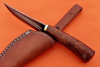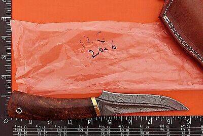 9" trailing point blood groove blade skinning knife, Walnut wood, Leather sheath
