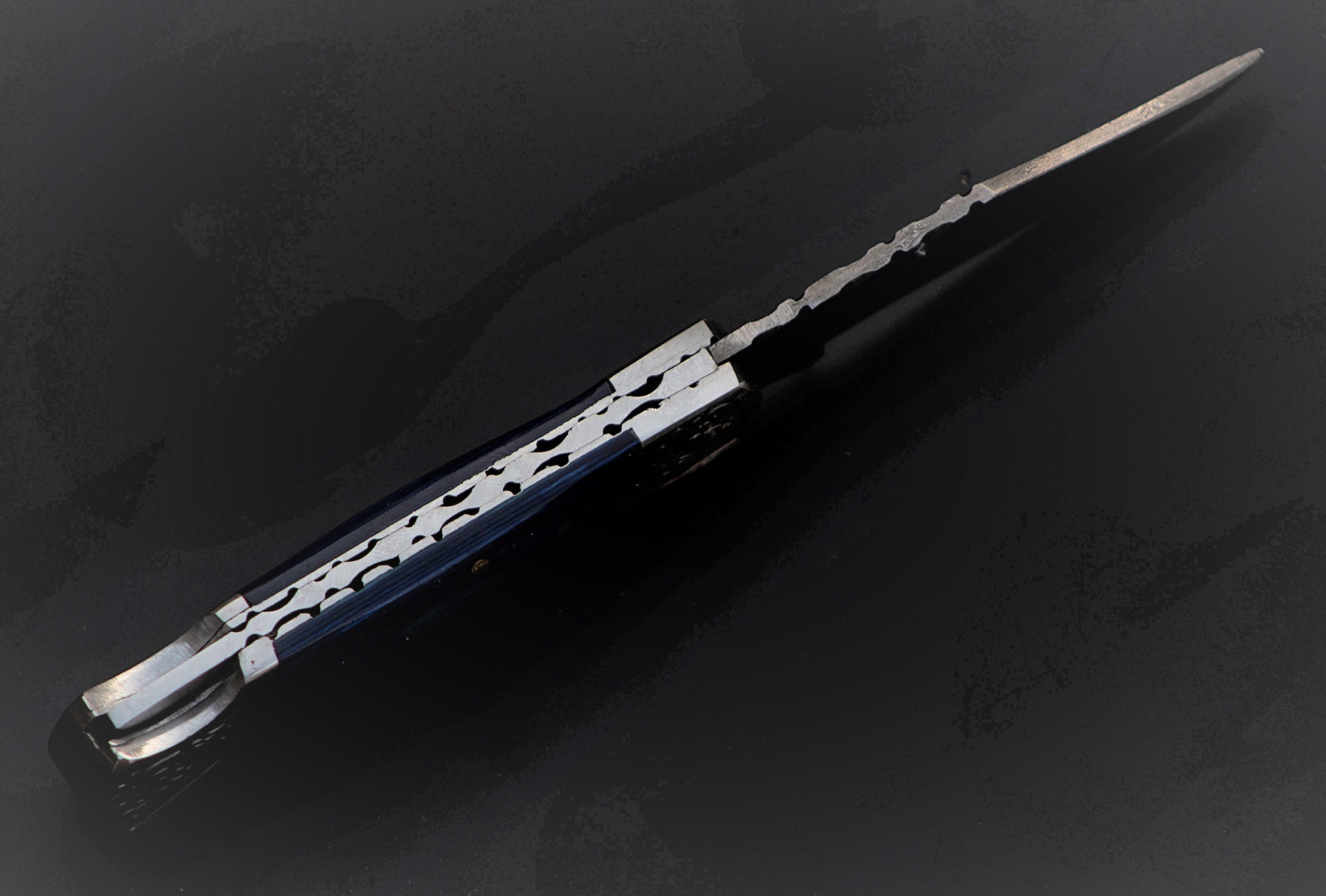- 3.5 mm thick hand forged twist pattern Damascus steel blade. Up to the standards of pocket knife, camping knife, personalize knife.