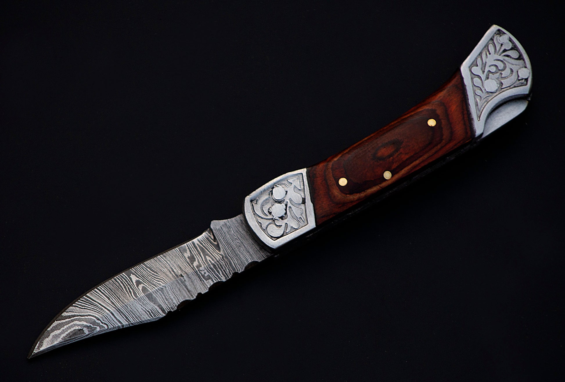 - 3.25" Hand Forged Damascus steel blade. 4 Inches folded length Equipped with strong back locking system.