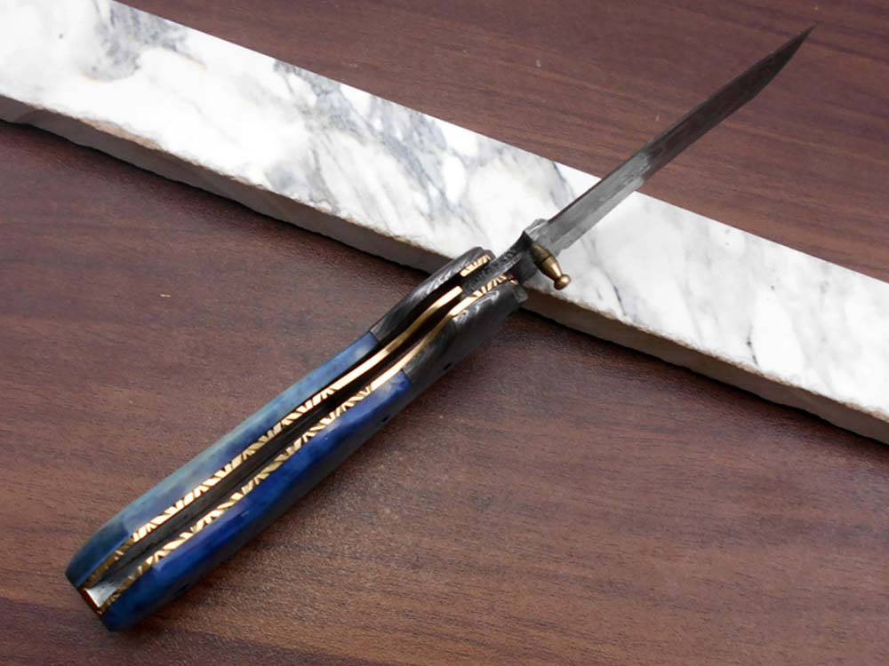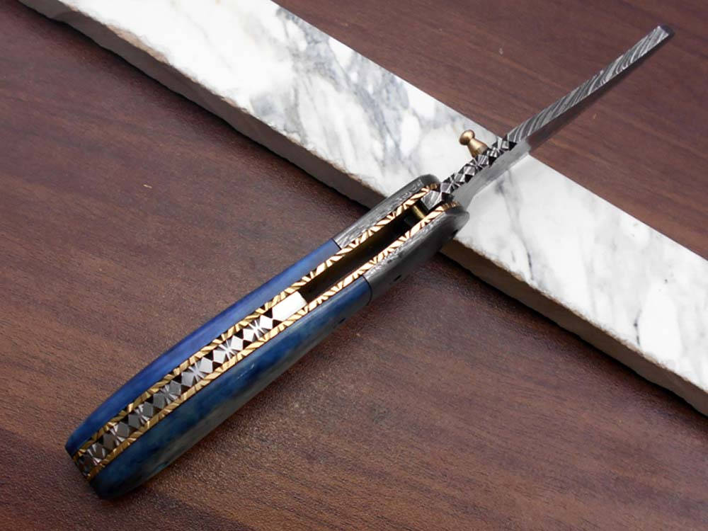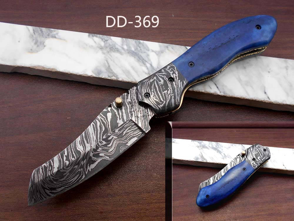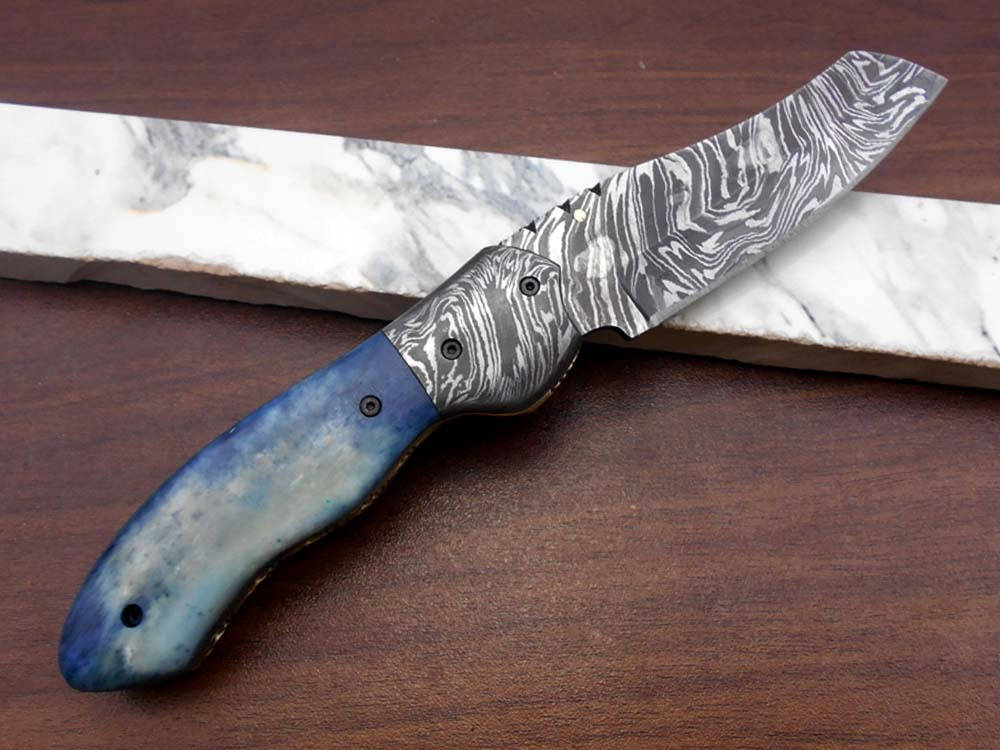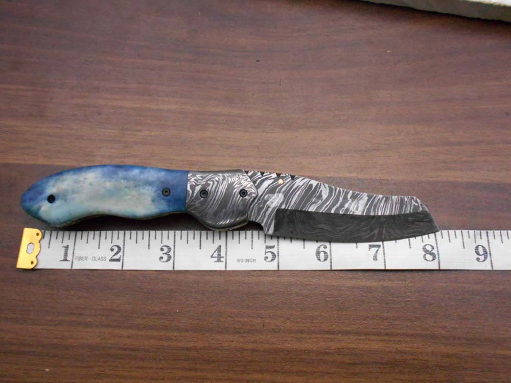 Overall 7.8″ Long Folding knife with 3.3″ long Damascus Blade. 3″ of cutting edge