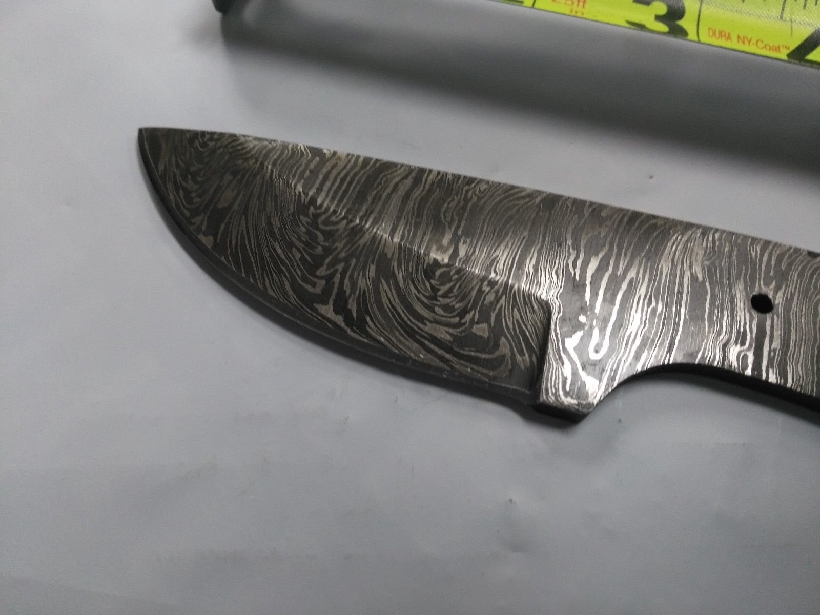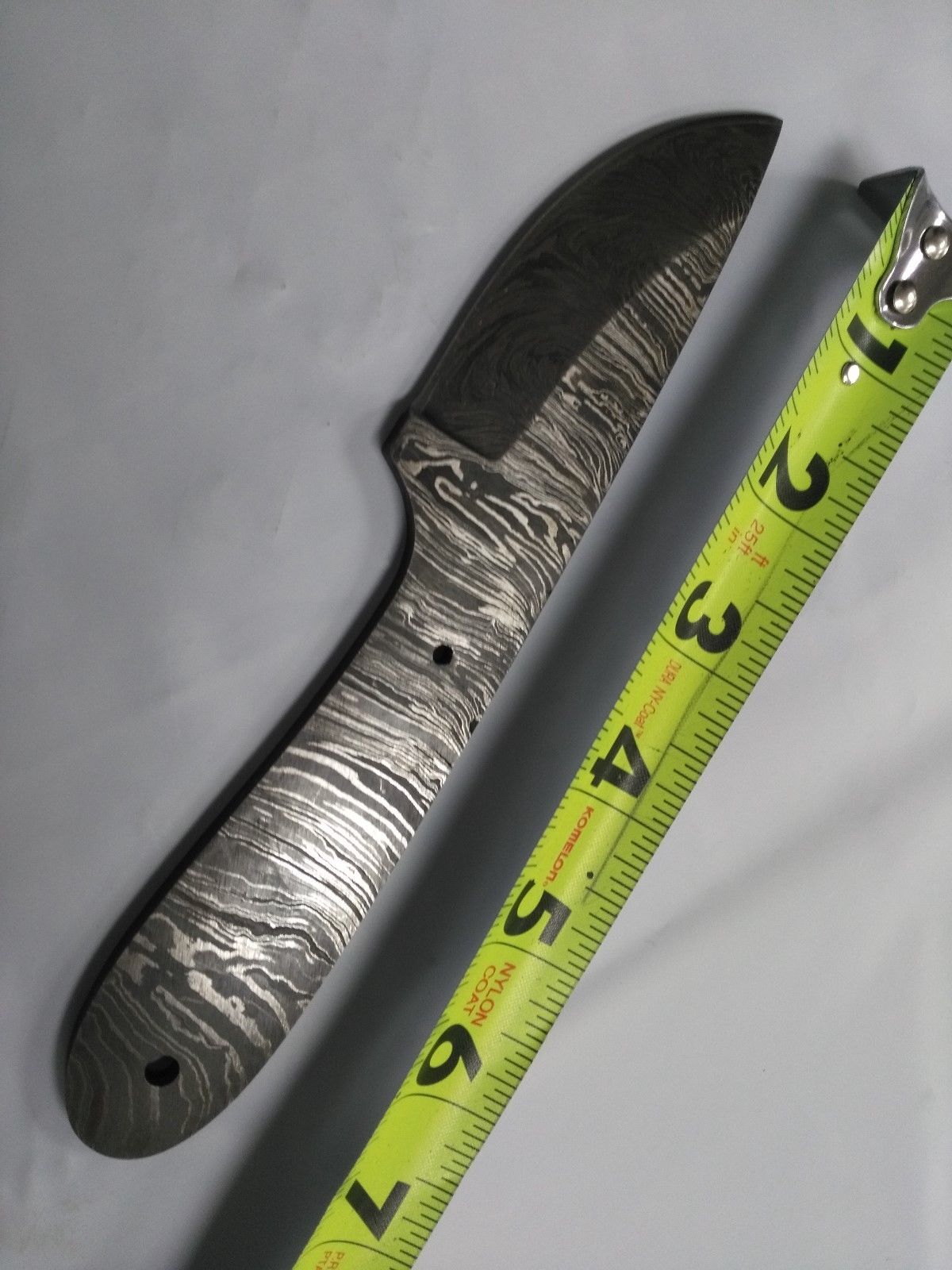 Damascus steel 7" long hand forged blank blade 4.5" cutting edge, 3 screw holes