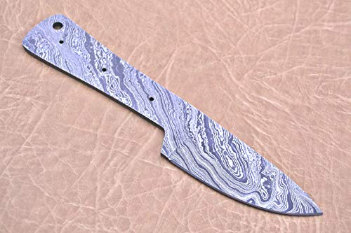 Damascus Steel Blank Blade 8.25 inches Long Hand Forged Skinning Knife with 3 Pin Hole & an Inserting Hole Space 4 inches Cutting Edge