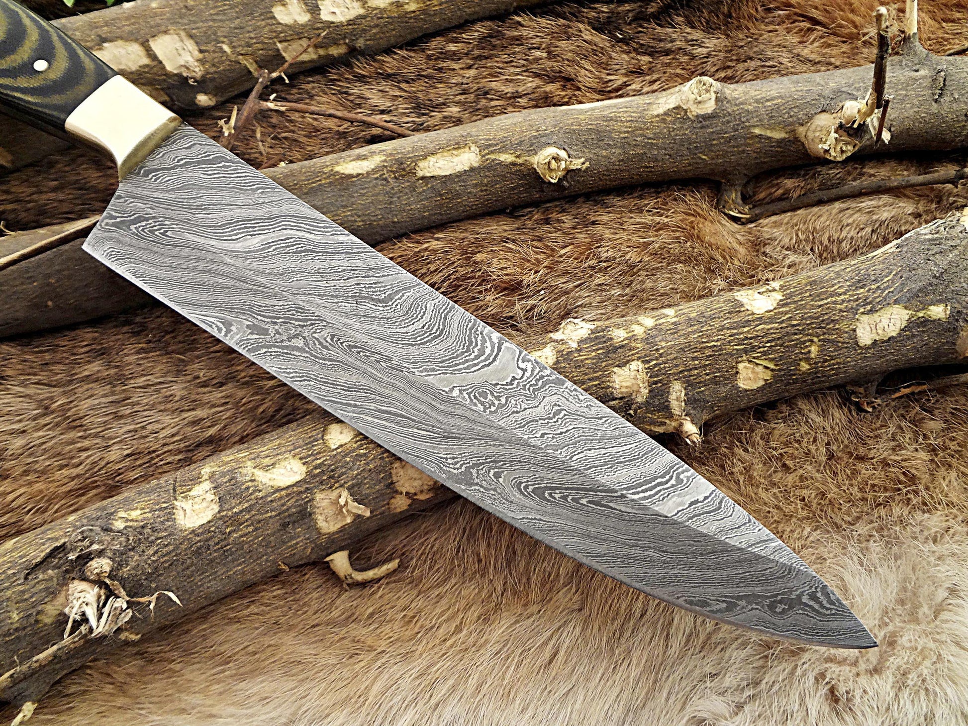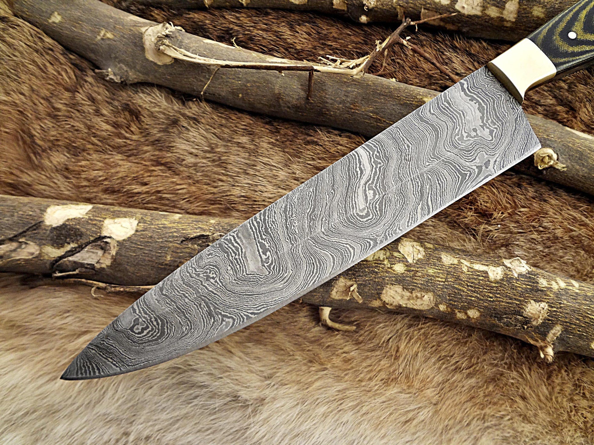 Blade is made of Damascus steel by forging the 1095 and 15N20 high and low carbon steel with hundreds of layers folded