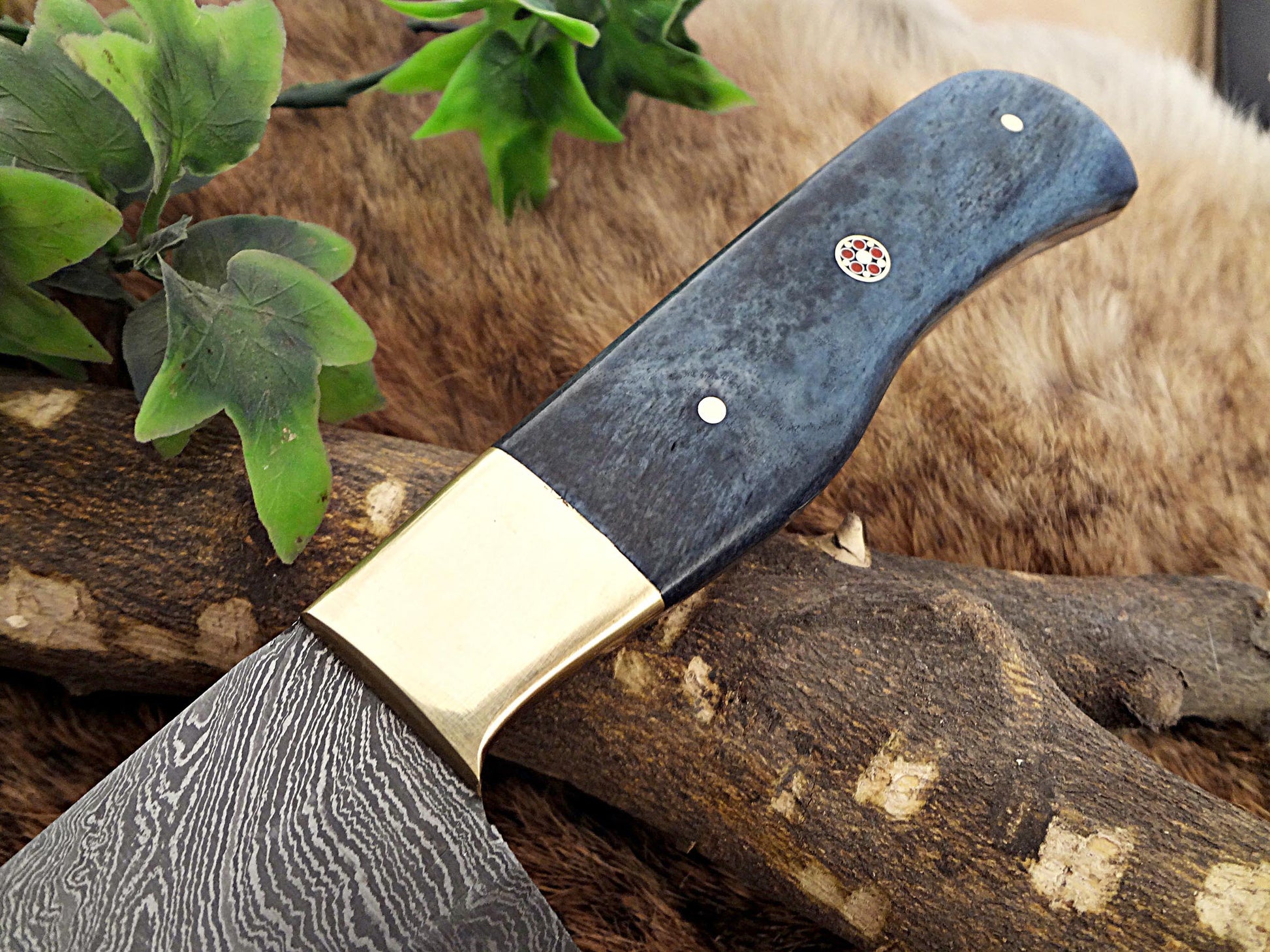 - Damascus Steel kitchen Knife 14 Inches full tang 9″ long Hand Forged blade, Blue Colored camel bone and brass bolster scale