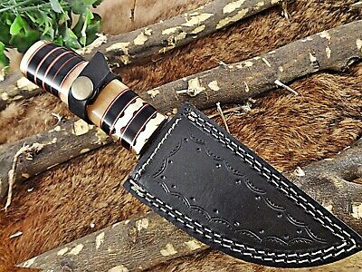 Each knife comes with a fine quality extra thick and robust leather sheath. The sheath has belt inserting loop and can be worn on belt. Blade is made of Damascus steel by forging 1095 and 15N20 (Low and high carbon steel).