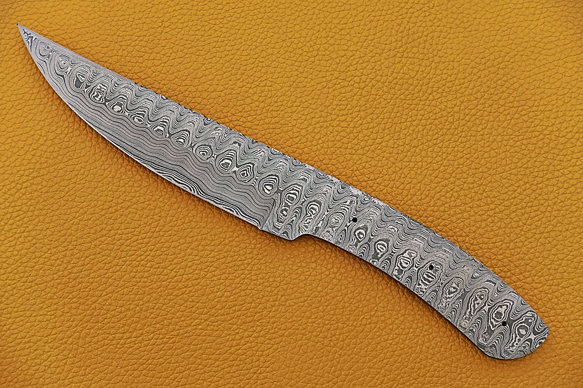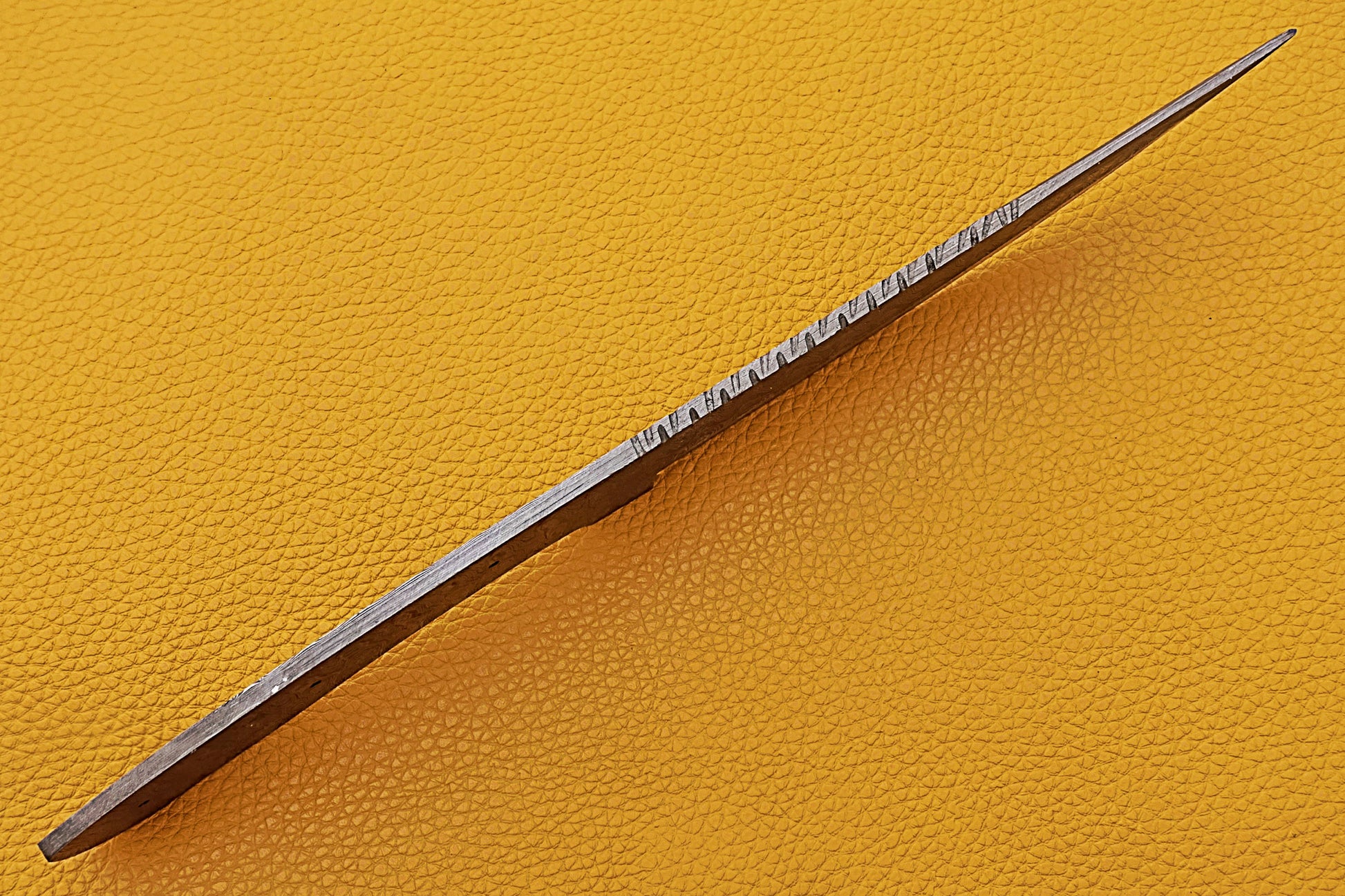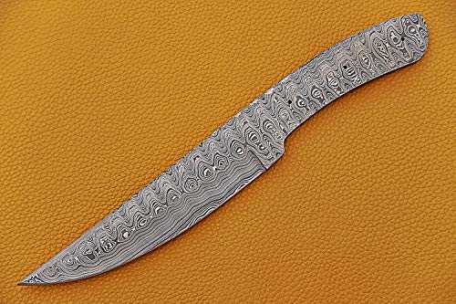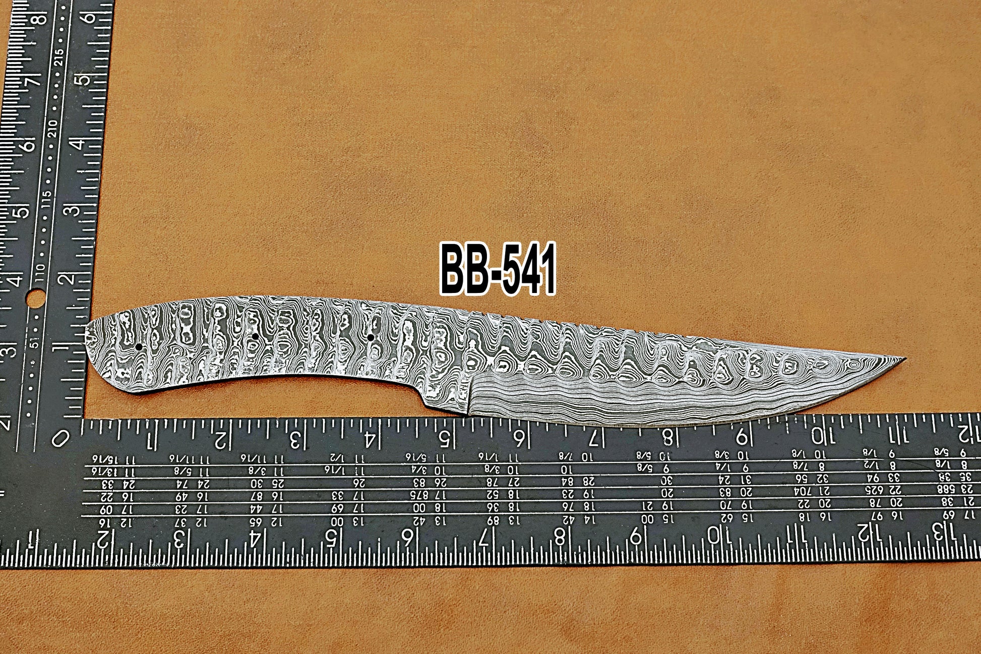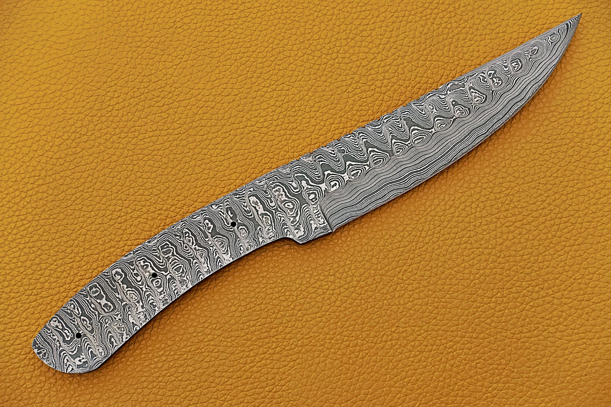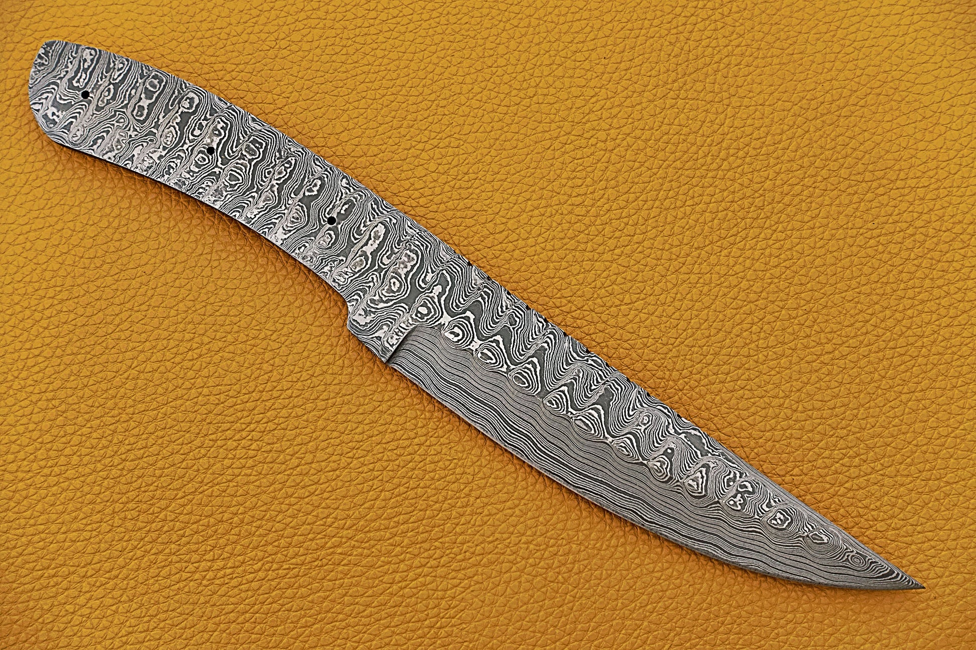 Knife Making, Damascus Steel Blank Blade 11 inches Long Hand Forged Trailing Point Skinning Knife, Hunting Knife with 3 Pin Hole, 6 inches Cutting Edge, 4.5" Scale Space
