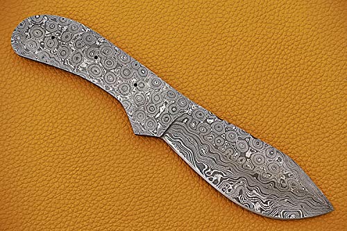 Knife Making, Damascus Steel Blank Blade 8.5 inches Long Hand Forged Trailing Point Skinning Knife, Pocket Knife with 3 Pin Hole, 3.75 inches Cutting Edge, 4" Scale Space
