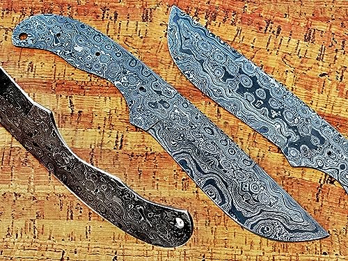 knife making rain drop pattern Damascus steel blank blade, 10.5 inches long hand forged straight back skinning knife, hunting knife, 4.5" scale space with 3 Pin and a lace hole, 5.25 inches cutting edge