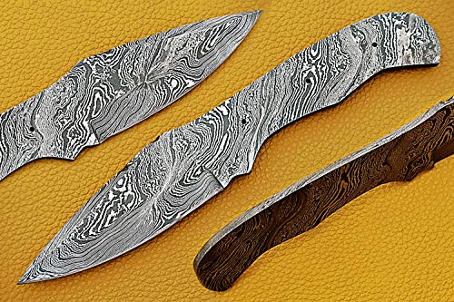 Knife Making Supplies Damascus Steel Blank Blade 9 inches Long Hand Forged Skinning Knife Blade, Drop Point Blade Pocket Knife with 3 Pin Hole, 4 inches Cutting Edge, 4.5" Scale Space