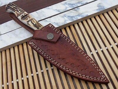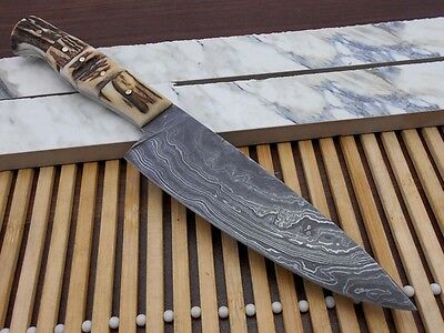 Stag Antler scale 10 Inches long Chef Knife custom made hand forged Damascus