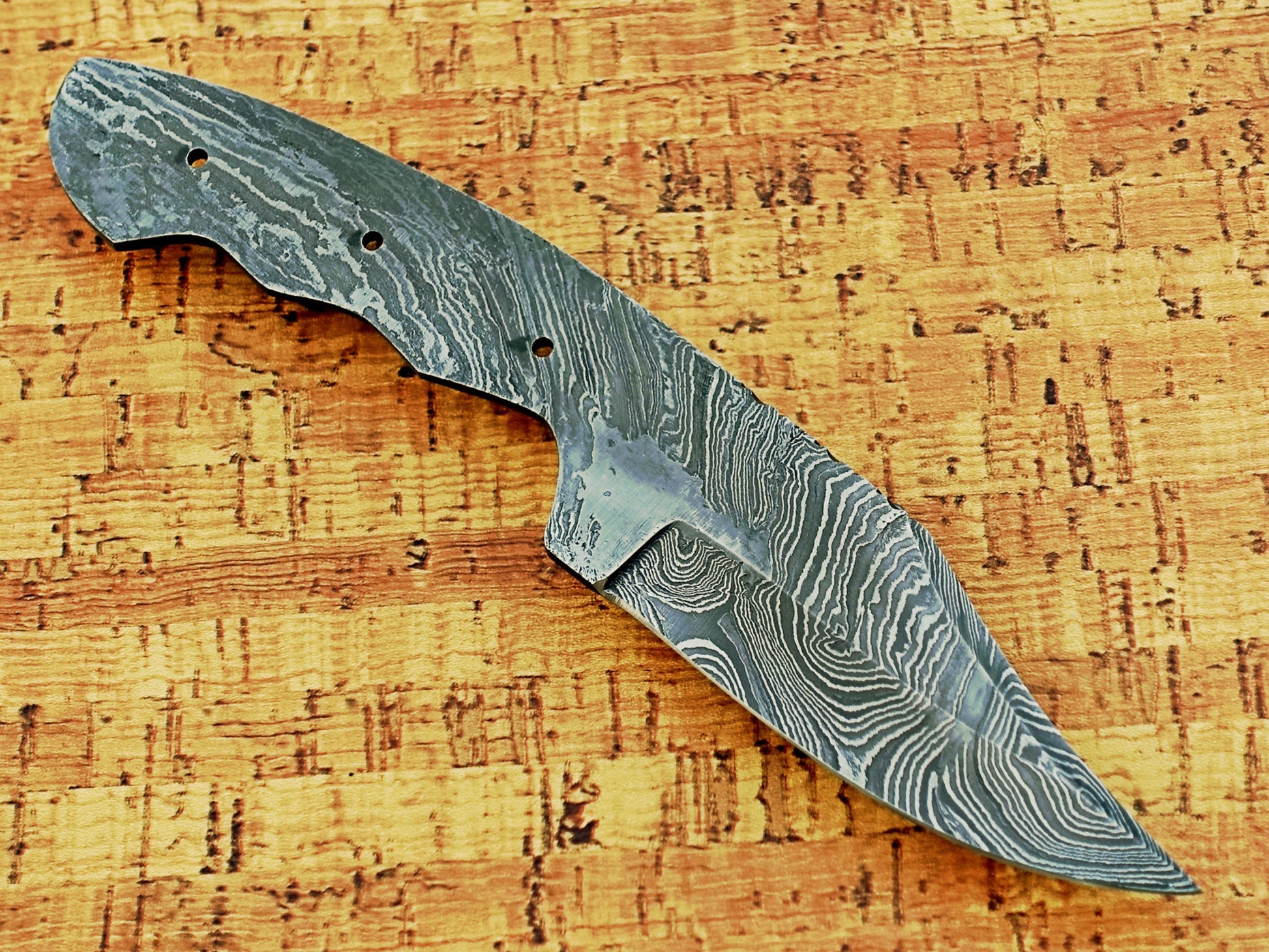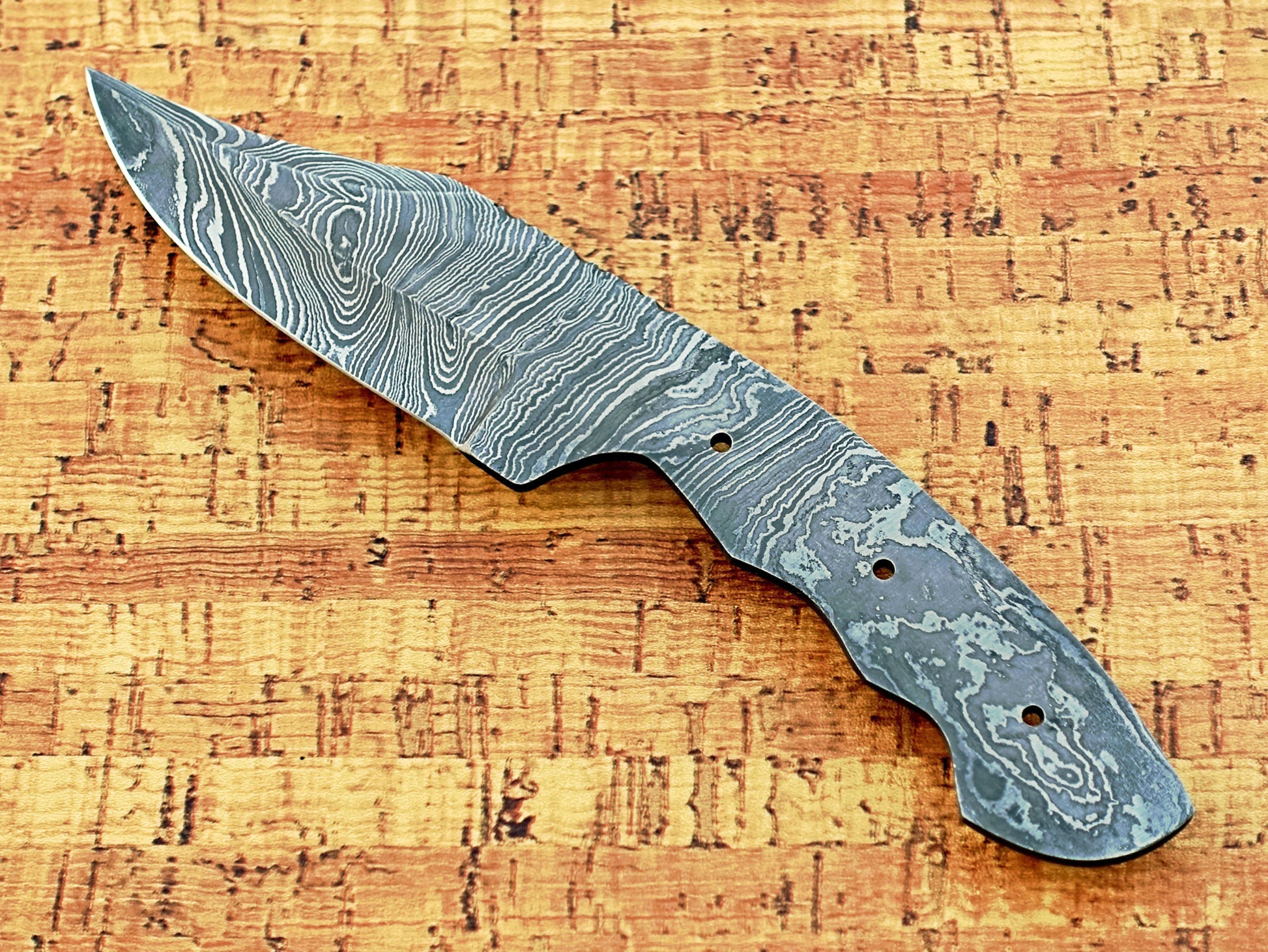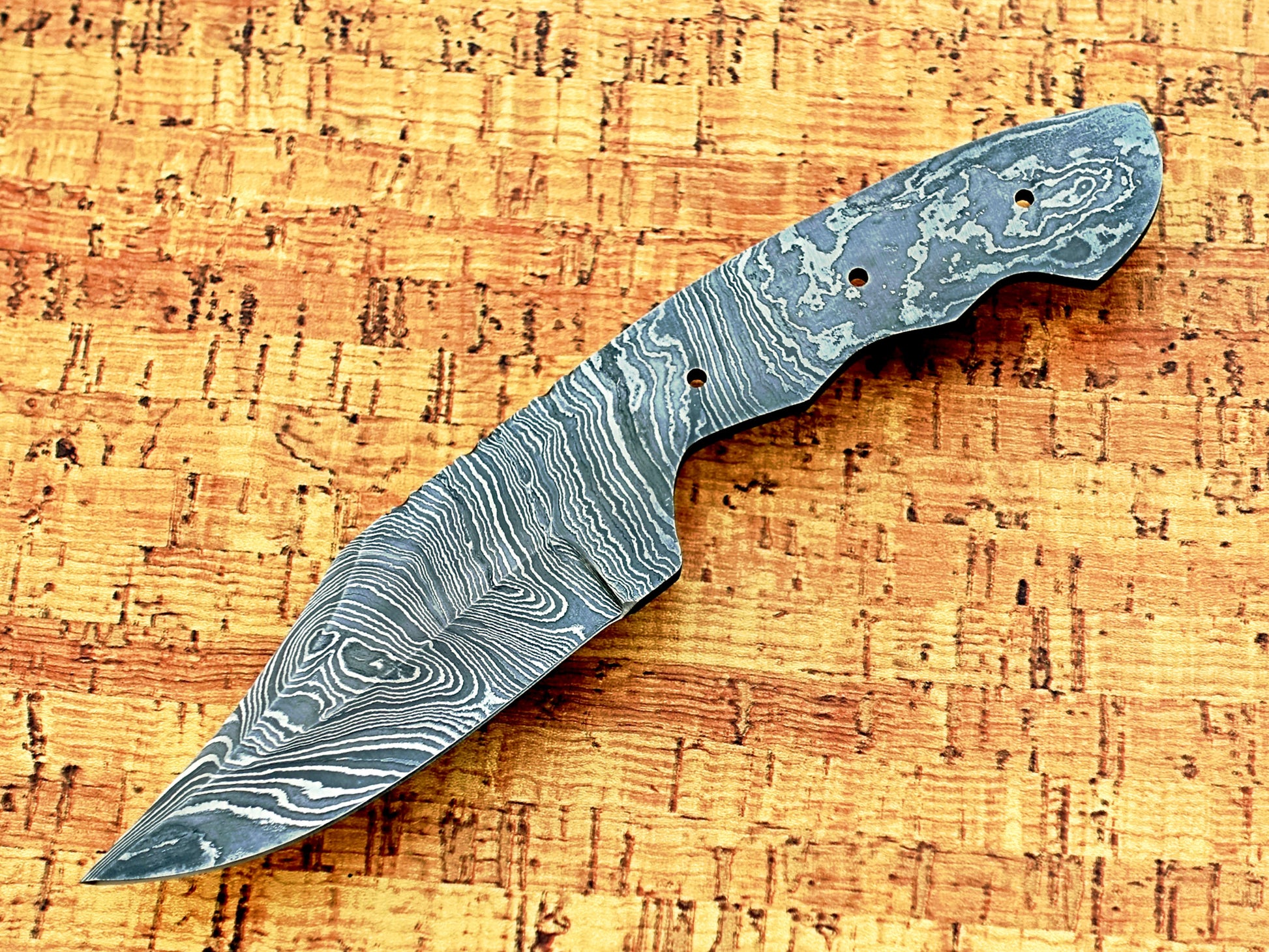 Twist pattern Damascus steel clip point blank blade, 8.5 inches long full tang blank blade with 3.75 cutting edge, 3 finger groove scale with 3 pins, knife making supplies