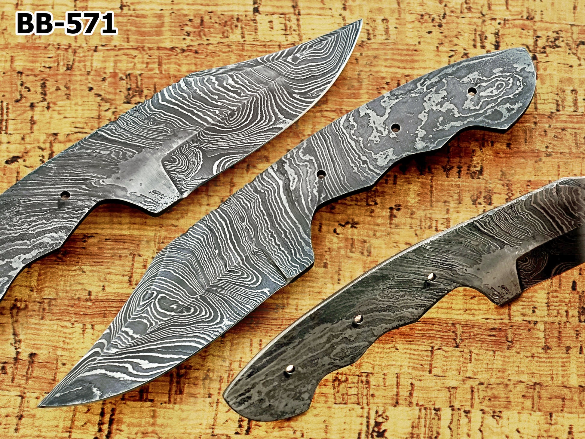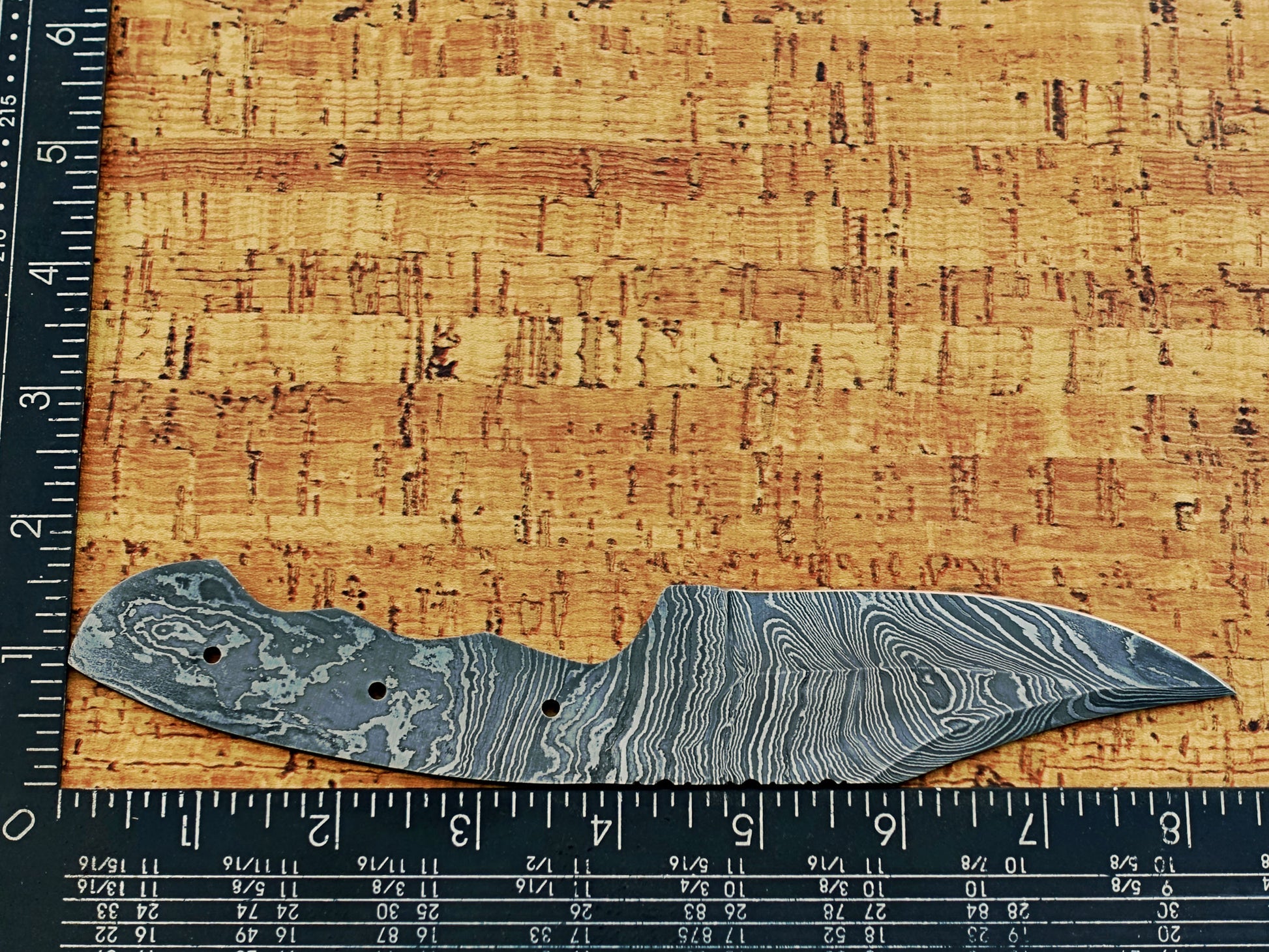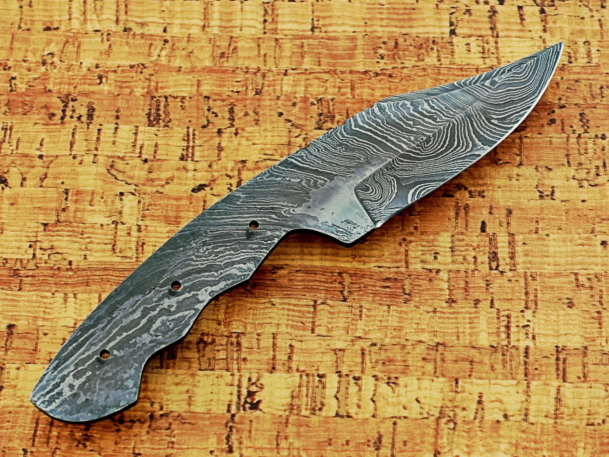Twist pattern Damascus steel clip point blank blade, 8.5 inches long full tang blank blade with 3.75 cutting edge, 3 finger groove scale with 3 pins, knife making supplies